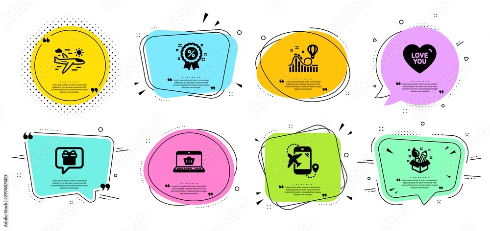 Creativity Love You And Wish List Line Icons Set Chat Bubbles With Quotes Online Shopping Roller Coaster And Flight Destination Signs Airplane Travel Discount Symbols Vector Stock Vector Adobe Stock